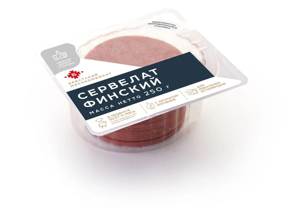 Купить Колбаса варено-копченая сервелат «Финский» 250г можно с доставкой по Нарьян-Маре. Мы гарантируем отличное качество и свежесть наших белорусских колбас!